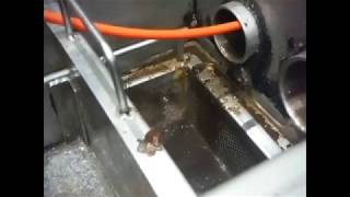 最後に流水確認を行い、正常にグリストラップに流れ込んでいますので、作業終了です。